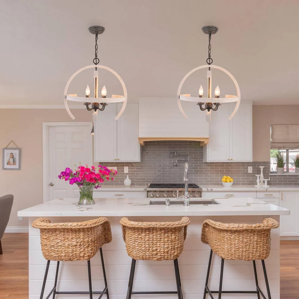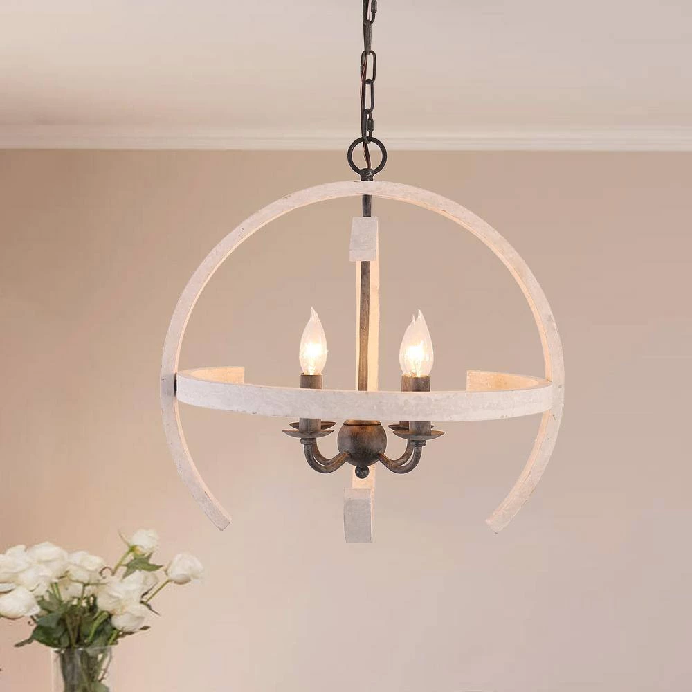 Featuring the distressed white finish and antique wood construction, this chandelier ensures a timeless and striking focal point that elevates your abode in an instant. The wood light fixture is not only a refreshing addition to home decor but also produces just the right amount of warm, adequate lighting that meets lighting needs and makes your family feel at ease. Easy to hang with a simple style and designed with adjustable hanging height, it’s the best choice for lighting your entryways, kitchen, dining room, and more.