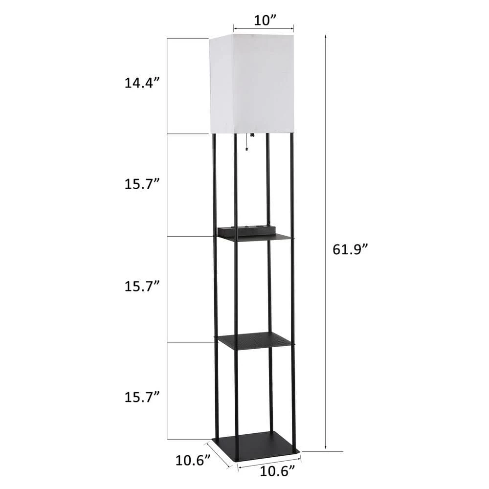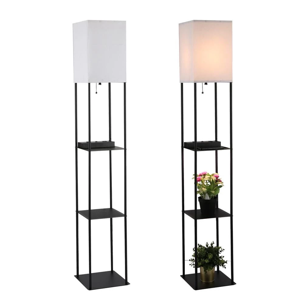 - 【Modern 3-in-1 Shelf Floor Lamp】: Tender cloth light shade and sturdy iron frame collision the fashion sparks, this design complements any room decoration, like modern, rural, farmhouse and so on. This shelf floor lamp is a unique combination with the storage shelf, charge station, and led floor lamp.