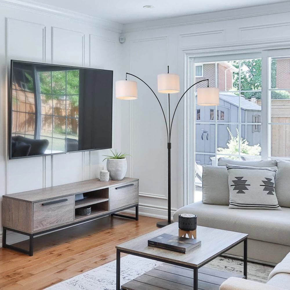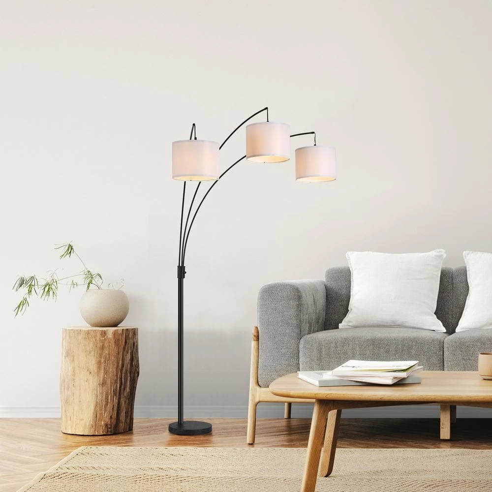 - Nice fit into modern, contemporary, or mid-century house. The poles sit at the back of weighted base, so that it can fit snugly into tight spaces and provides ample lights over your head. The three lampshades are different sizes and heights, move the stems from side to side for efficient lighting. If you are looking for one-for-all lighting products for your living room, bedroom, lounge, or other corners, this tree arc floor lamp would be your ideal choice!
