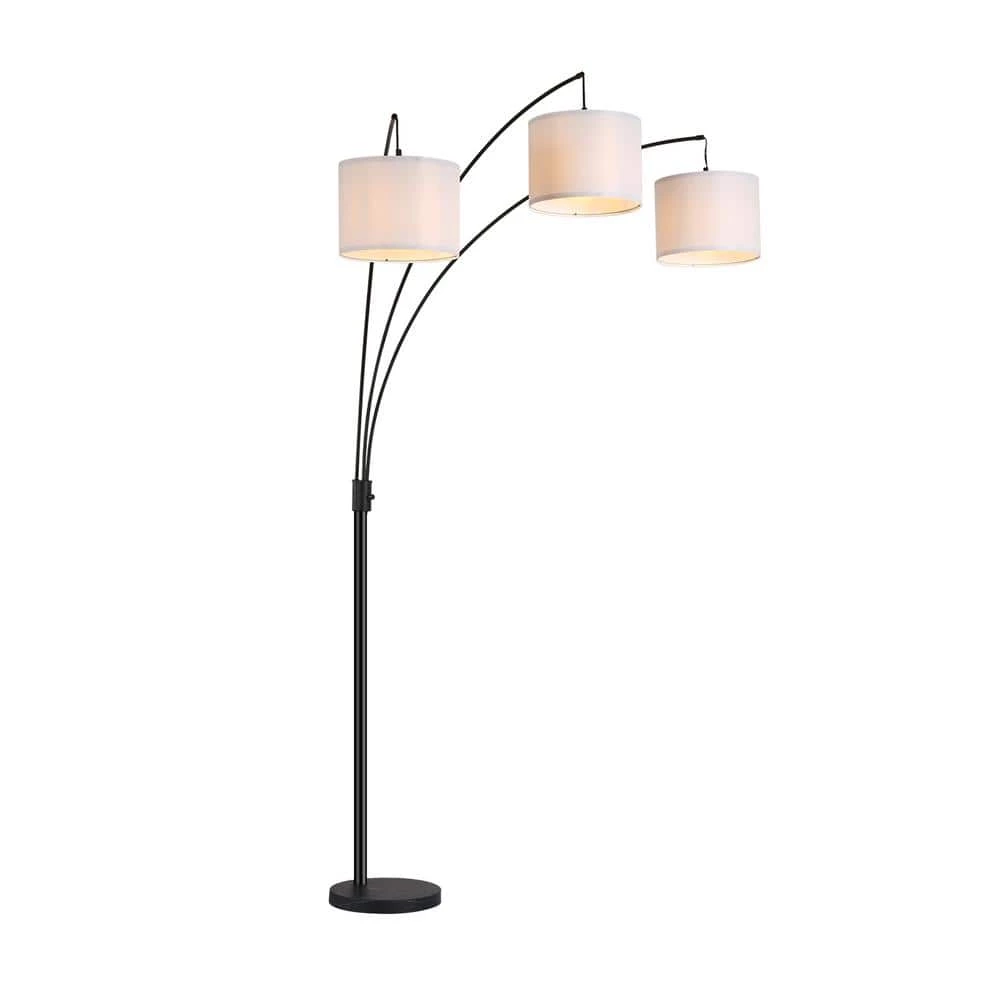 3-Light tree floor lamp has 3 linen drum shades which suspend from adjustable metal poles. Connecting to a metal body with a heavy marble base, the curved arms rise to a height of 82 in. tall and make this a gorgeous addition to any room. 3 adjustable arms create a tall and large standing lamp left and right swing arm can be moved side to side so that you can position the light where you want, convenient for a sectional or modular couch and creating a presence in a large lamp. It has a rotary switch on pole and uses three 60-Watt medium base(E26) bulbs (not included). No more fumbling with tiny screws to put a lamp together. Simply place the arm poles together and lock them in place with a convenient threaded collar.