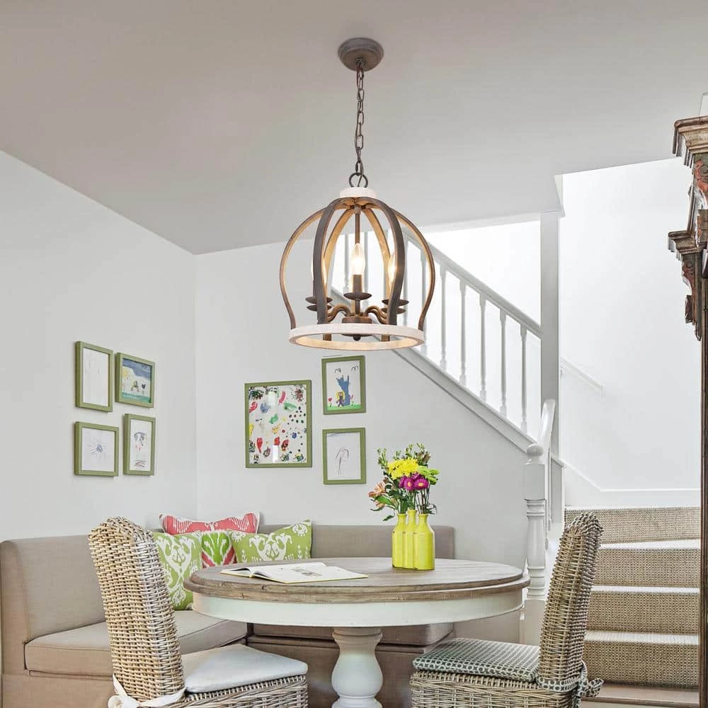 This charmingly casual chandelier defies convention by featuring distressed white finish artfully combined with a crown frame. Provided with 6 candelabra lights surrounded by wood cage, this light fixture creates a warm, atmospheric glow and help shine a light on your chill design philosophy. Hardwire this wood chandelier to your ceiling with an adjustable chain, it will be the best choice to play well with your home decor.