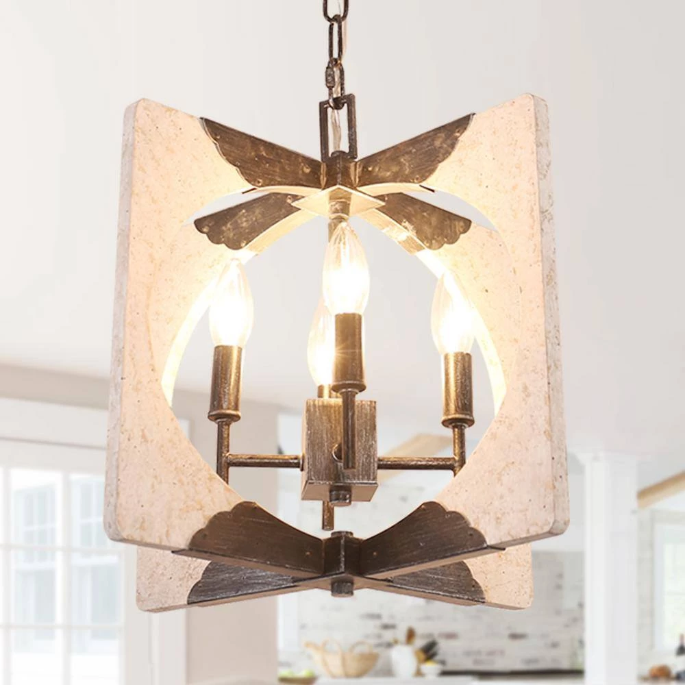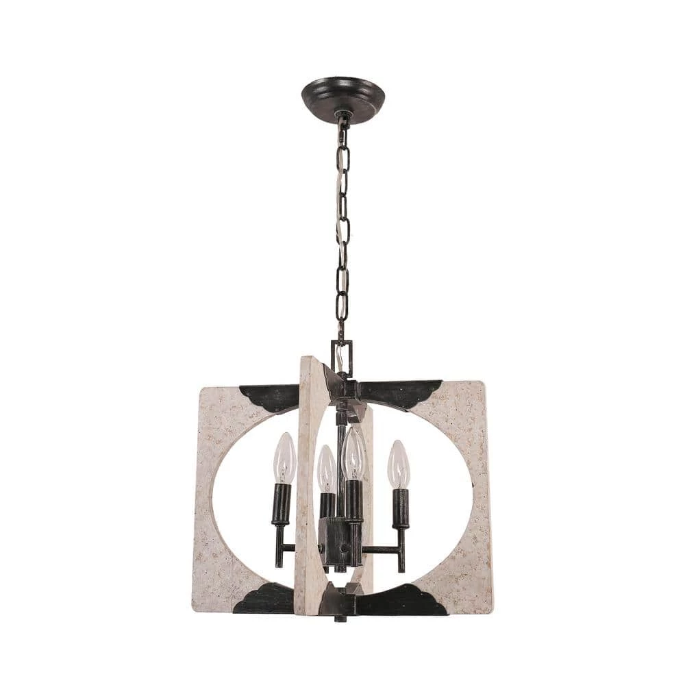 Brighten your room while putting your embedded distressed white finish and minimalist style on display with this 4-light rectangular wood candle chandelier. The antique square frame features a rectangular wooden cage for a classic look that protects the candelabra base and opens up for ambient light in your space. Featuring an adjustable chain, you are free to adjust the hanging length at your desired height.