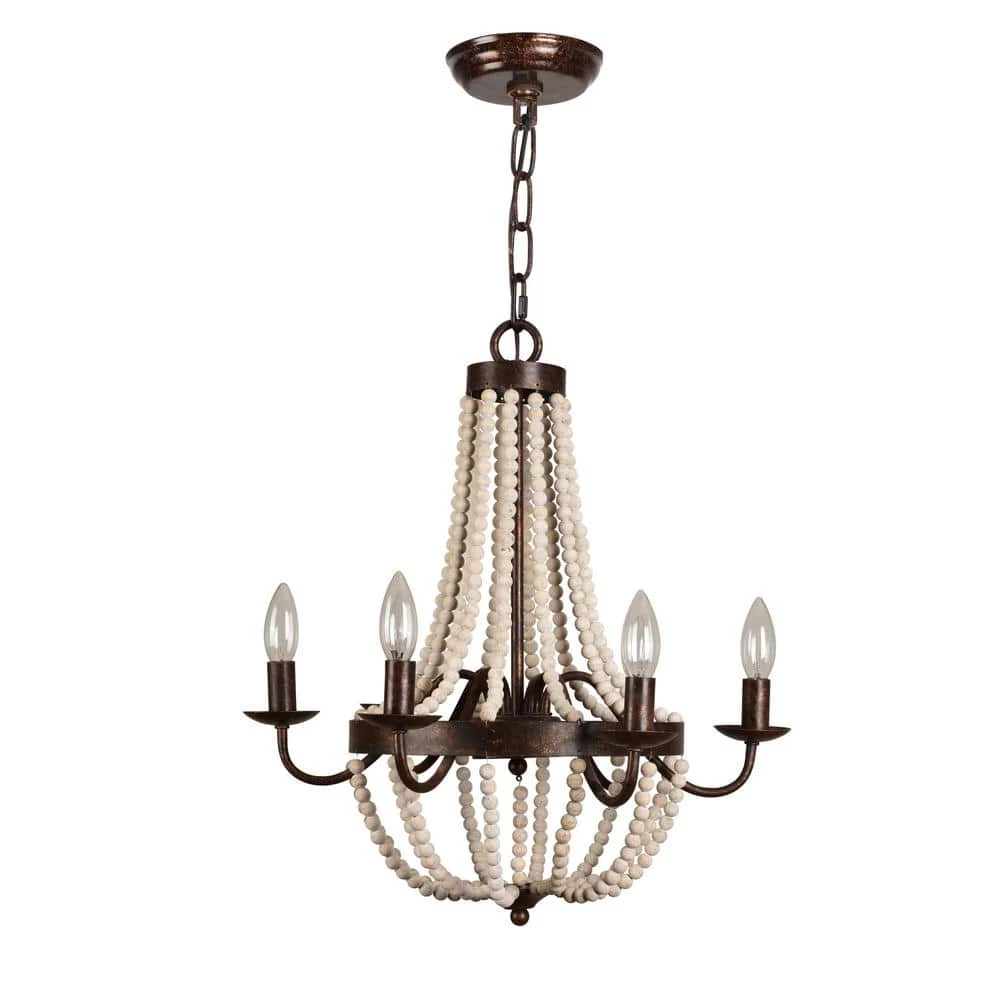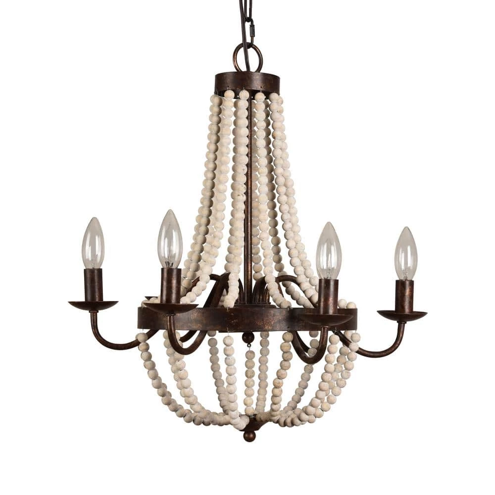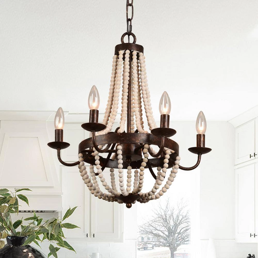 Bring elegance and add an eye-catching touch to your space with this 6-light wood bead chandelier. Featuring the design of the empire silhouette with beaded accents and hanging with an adjustable chain, you are free to adjust to your desired length. The frame in a rustic finish features a ring-like silhouette with curved arms to prop up the 6-light bulbs (not include). This light fixture will be a statement piece over a dining room table, in an entry foyer, in a master bathroom or even in a nursery and reading nooks.