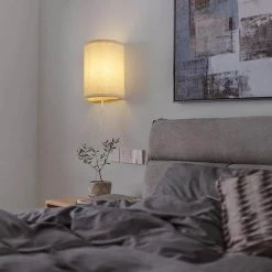 1-Light Off-White Fabric Round LED Wall Sconce Wall Light with Bulb (2-Pack) by Cedar Hill